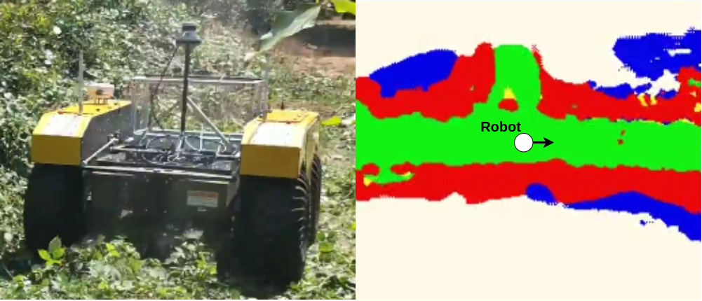 [paper] [website] [code] Producing dense and accurate traversability maps is crucial for autonomous off-road navigation. In this paper, we focus on the problem of classifying terrains into 4 cost classes (free, low-cost, medium-cost, obstacle) for traversability assessment. This requires a robot to reason about both semantics (what objects are present?) and geometric properties (where are the objects located?) of the environment. To achieve this goal, we develop a novel Bird’s Eye View Network (BEVNet), a deep neural network that directly predicts a local map encoding terrain classes from sparse LiDAR inputs. BEVNet processes both geometric and semantic information in a temporally consistent fashion. More importantly, it uses learned prior and history to predict terrain classes in unseen space and into the future, allowing a robot to better appraise its situation. We quantitatively evaluate BEVNet on both on-road and off-road scenarios and show that it outperforms a variety of strong baselines.