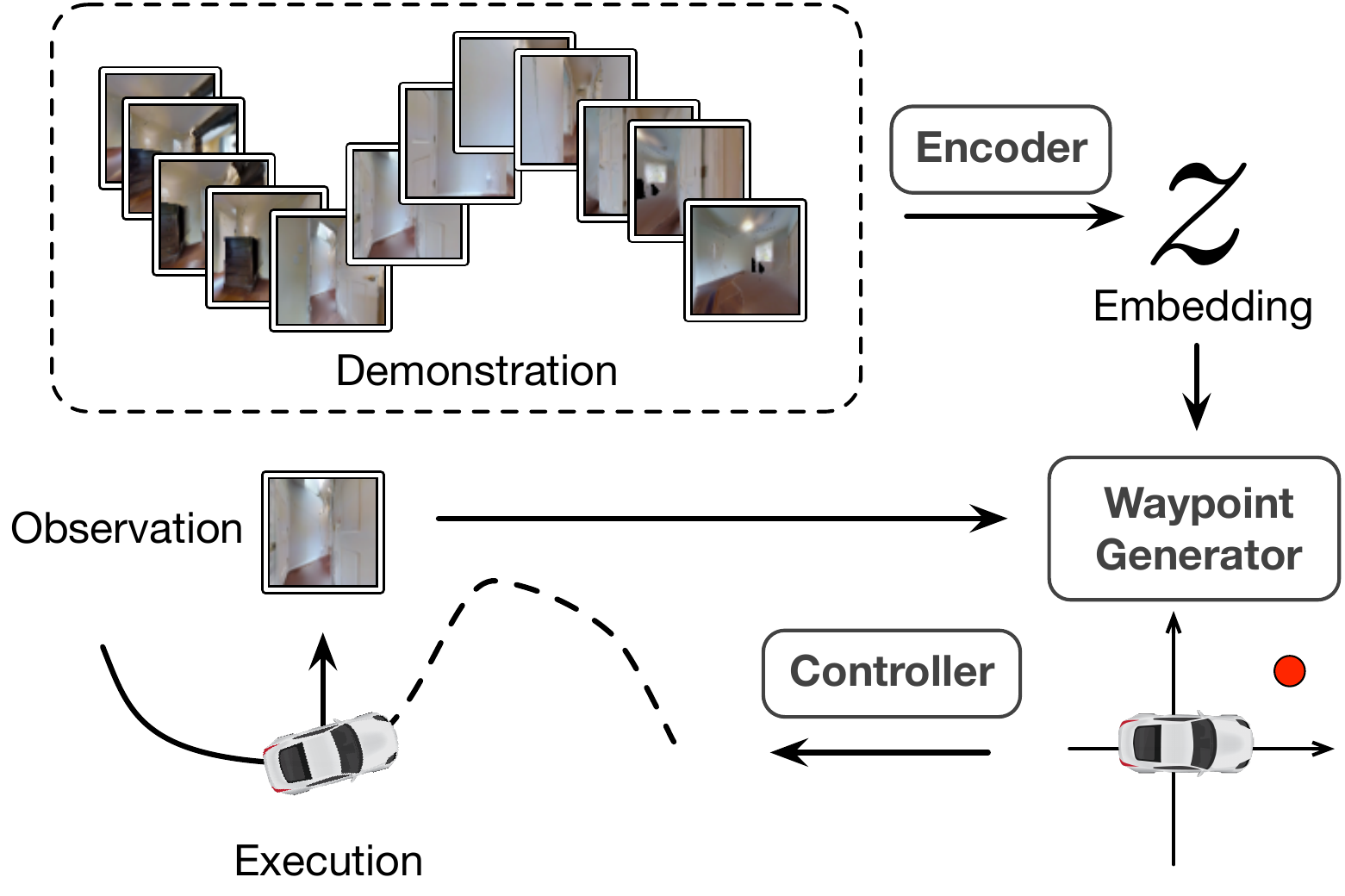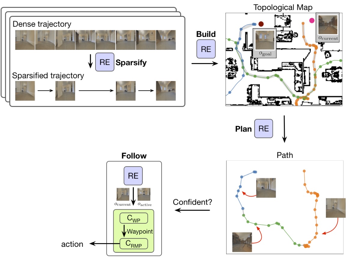 [paper] [website] [code] Visual topological navigation has been revitalized recently thanks to the advancement of deep learning that substantially improves robot perception. However, the scalability and reliability issue remain challenging due to the complexity and ambiguity of real world images and mechanical constraints of real robots. We present an intuitive solution to show that by accurately measuring the capability of a local controller, large-scale visual topological navigation can be achieved while being scalable and robust. Our approach achieves state-of-the-art results in trajectory following and planning in large-scale environments. It also generalizes well to real robots and new environments without finetuning.