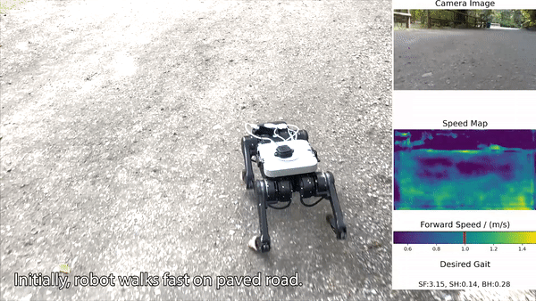 [paper] [blog] The semantics of the environment, such as the terrain type and property, reveals important information for legged robots to adjust their behaviors. In this work, we present a framework that learns semantics-aware locomotion skills from perception for quadrupedal robots, such that the robot can traverse through complex offroad terrains with appropriate speeds and gaits using perception information. Due to the lack of high-fidelity outdoor simulation, our framework needs to be trained directly in the real world, which brings unique challenges in data efficiency and safety. To ensure sample efficiency, we pre-train the perception model with an off-road driving dataset. To avoid the risks of real-world policy exploration, we leverage human demonstration to train a speed policy that selects a desired forward speed from camera image. For maximum traversability, we pair the speed policy with a gait selector, which selects a robust locomotion gait for each forward speed. Using only 40 minutes of human demonstration data, our framework learns to adjust the speed and gait of the robot based on perceived terrain semantics, and enables the robot to walk over 6km without failure at close-to-optimal speed.